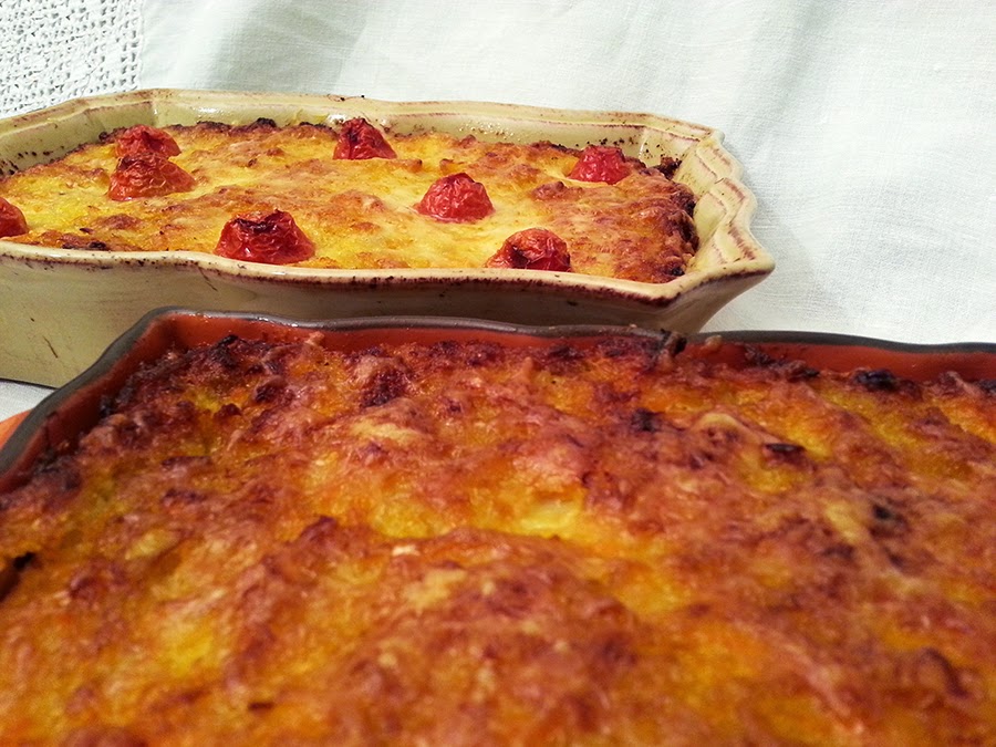 Nota: podem preparar com antecedência e levar a gratinar na hora de servir e o prato até pode ser congelado, colocando o preparado totalmente pronto em tabuleiros e tapando muito bem com película aderente.