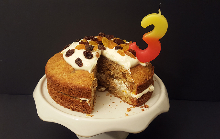 O blog faz hoje 3 anos. Como já tenho dito várias vezes, lancei-me neste projeto por ter sido muito incentivada por alguns amigos, pelo meu sobrinho e pelo meu marido. Foram estas pessoas que me deram força e insistiram para que eu passasse a partilhar o que faço na cozinha. Estas são algumas das pessoas que mais gostam do que eu cozinho. E eu gosto muito de cozinhar para todas elas. É com estes amigos e familiares que me sinto feliz em partilhar petiscos e risadas à mesa, é para eles que gosto de fazer miminhos pelos aniversário, surpresas para levar para as festas ou jantaradas que fazemos juntos, bolos para os anos dos miúdos crianças e tudo o que possa gerar um sorriso.