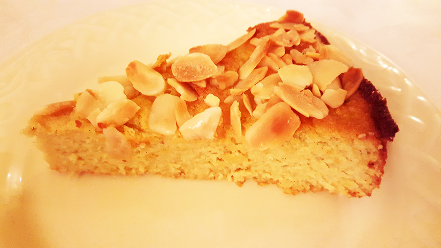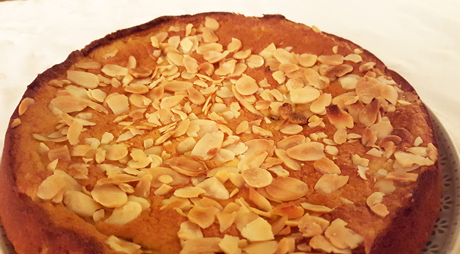 Dica: se não quiser juntar o caramelo, deite as amêndoas laminadas cruas em cima da massa crua e leve-a assim ao forno. Desta forma o bolo fica logo com a cobertura de amêndoa tostada e o tempo que a massa leva a cozer é o tempo da amêndoa ficar tostadinha.