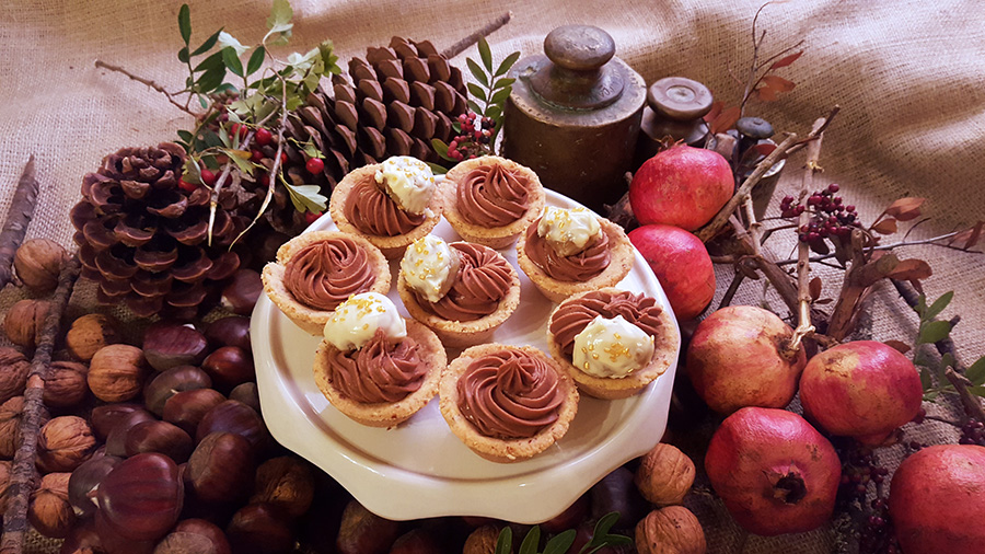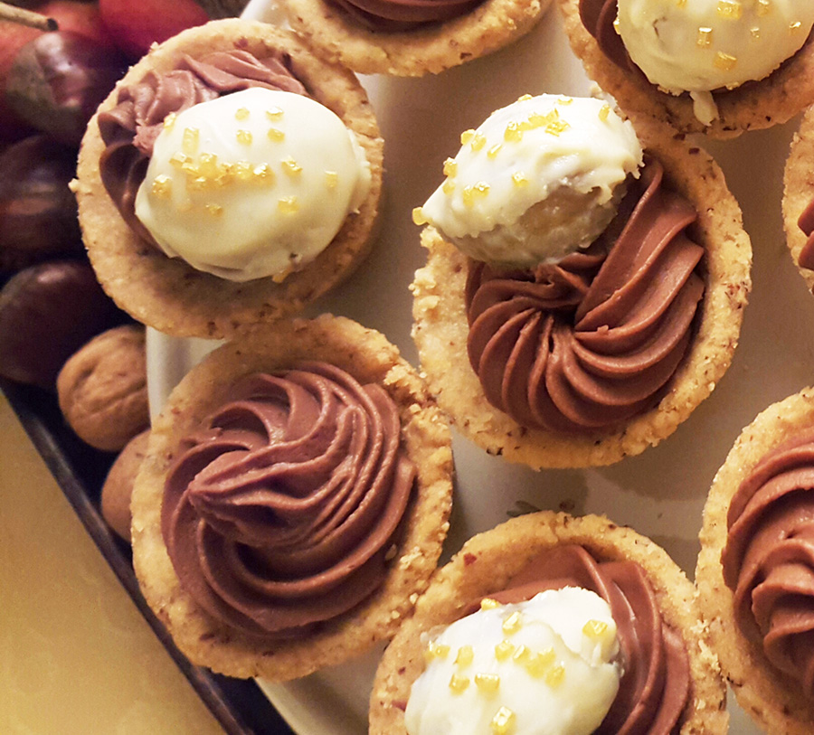 O desafio deste mês no “Grupo Dia Um… Na Cozinha” era fazer uma iguaria com castanhas. Eu gosto muito de castanhas e consumo-as durante todo o outono e inverno. Faço-as cozidas, assadas, fritas (na Actifry ficam uma delícia), utilizo-as em bolos e, desta vez, utilizei num doce diferente. A expressão “iguaria” sugere-me algo pequeno, delicado e delicioso, por isso puxei pela imaginação e inspirei-me em algumas ideias para confecionar estas delícias de castanha e chocolate. Fiquei satisfeita com o resultado, acho que ficaram muito bonitas e o contraste entre o crocante da base e o doce cremoso ficou maravilhoso.