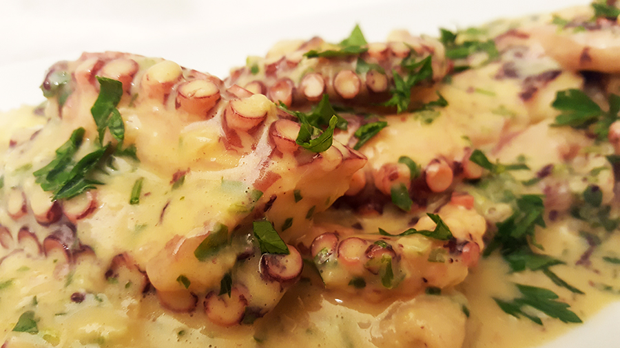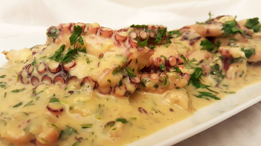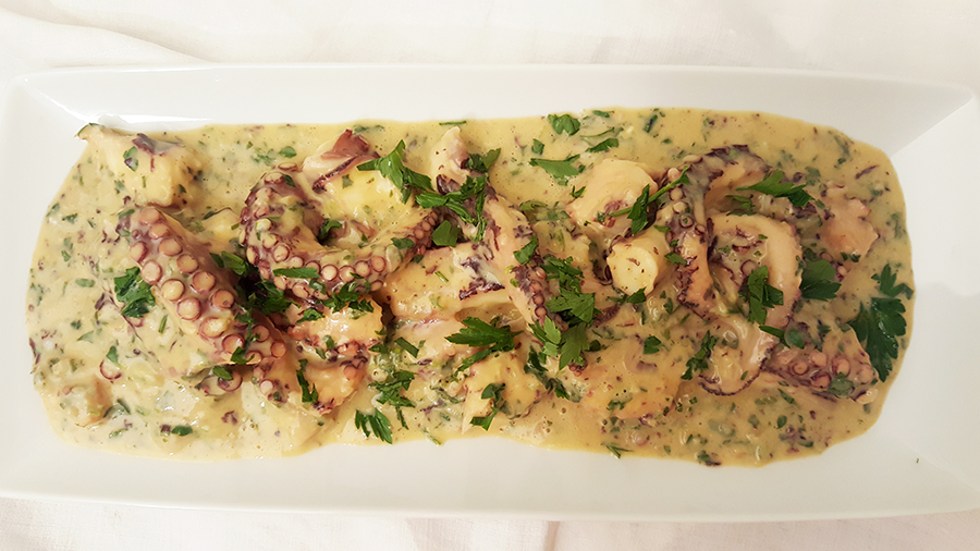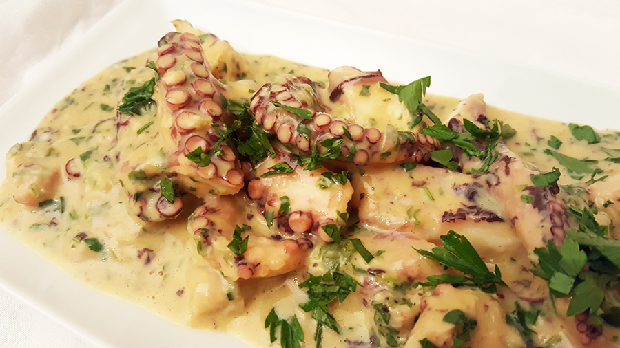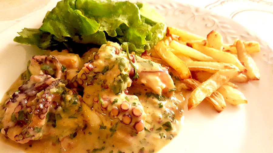 Digo várias vezes que gosto de fricassé de tudo e é verdade! De frango, galinha, peixe, cogumelos… e de polvo! Para quem nunca provou é fácil: se gostam de polvo e de fricassé, gostam deste prato. É simplesmente delicioso! O molho deve ficar grosso e suculento e ser abundante, pelo menos para mim, que sou gulosa e adoro fricassé! Para tal há que ter alguma paciência, ir juntando a água da cozedura do polvo e deixando reduzir lentamente e, só por fim, juntar as gemas e sumo de limão. Muita salsa picada, como pede qualquer fricassé e está feito! Há muito que andava para experimentar o prato, foi este fim-de-semana e não desiludiu. Servi como prato principal, com batatas fritas e salada de alface, mas pode ser servido como entrada ou petisco, em alternativa, por exemplo, à tradicional salada de polvo. Espero que gostem da sugestão.