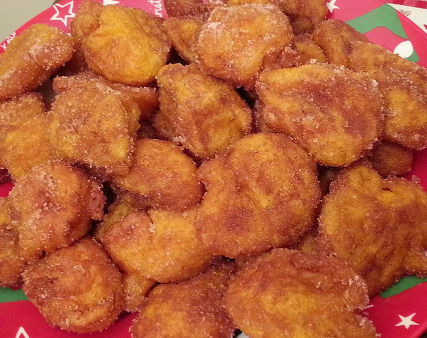 Deixo-vos uma receita de fritos de abóbora que deram à minha mãe e que ela executou na perfeição. Penso que o facto da abóbora ser do nosso terreno e ser de grande qualidade foi um dos factores de sucesso destes fritos que estavam mesmo muito bons. E o carinho da mãe ao fazê-los, claro está! Deliciosos!