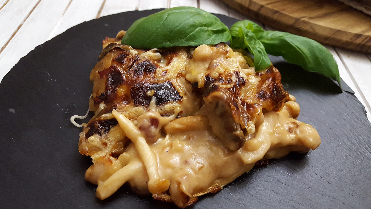 Aqui está um prato que é mesmo a minha carinha! Guloso, cremoso, cheio de cogumelos e queijo, que são dois dos meus ingredientes preferidos. Se quiserem podem não colocar o presunto, mas eu acho que dá imenso sabor. Gostei tanto deste gratinado, suculento e cheio de sabor, que acho que era capaz de comer isto todos os dias!