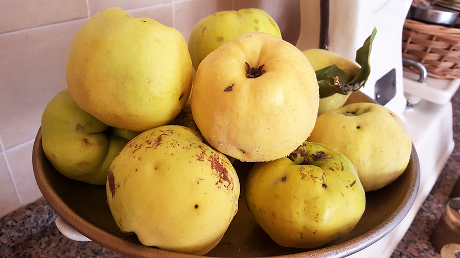 Apanhei as gamboas da árvore dos meus pais e fiz marmelada. Umas semanas depois a minha amiga Rosa ofereceu-me vários quilos de gamboas, igualmente grandes e bonitas, e voltei a fazer marmelada. As gamboas são como os marmelos, mas maiores e provenientes de árvores, enquanto os marmelos nascem de arbustos mais baixos. A gamboa tem um pouco menos de acidez e também é muito aromática, faz uma compota excelente! Não sou muito experiente a fazer este doce, por isso pedi umas dicas a uma colega do grupo do pilates, uma amiga que cozinha bastante bem. Segui os conselhos a preceito, não descasquei a fruta e usei uma proporção de açúcar que resultou na perfeição. Agradeço à minha amiga Manuela pelas dicas!