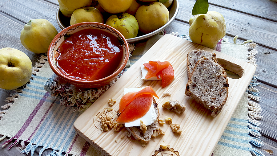 Como fiz a marmelada por duas vezes e com fruta de diferentes proveniências, o resultado final não foi exatamente o mesmo. As fotos que vos mostro foram tiradas da primeira vez que fiz, das gamboas da árvore dos meus pais. A marmelada ficou muito vermelha (adoro quando fica assim, acho muito bonito) e rija, de cortar à faca, mas sem estar seca. Quando fiz com as gamboas que a Rosa me deu, ficou mais clara e um pouco mais cremosa, mas igualmente saborosa. De ambas as vezes não descasquei os frutos. Quanto mais apurarem o doce, mais escuro fica e (potencialmente) mais rijo depois de arrefecido. Há quem faça na panela de pressão (a Rosa faz assim), mas eu não uso, por isso fiz num tacho e deixei apurar bastante até o açúcar estar em ponto bastante espesso e os marmelos mesmo a desfazerem-se. Espero que gostem e que se deliciem com este doce tão típico da época! O outono está a chegar… eu sou mulher do verão, mas há que aproveitar o que de bom cada estação nos oferece.