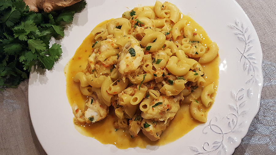 Quando a comida é saborosa (gulosa mesmo) e saudável, isso é algo que adoro! Porque adoro comer e tento escolher ingredientes saudáveis e formas diferentes de os confecionar, para prejudicar o menos possível a saúde e agradar o mais possível ao palato 😉 Não é difícil, é só uma questão de imaginação e ir experimentando conjugações de sabores. Os aromas, temperos, ervas aromáticas, são muitas vezes o segredo de um prato aromático e diferente. Poupa-se no sal e adiciona-se sabor de outras formas, com alimentos que, muitas vezes, são super saudáveis, mas ficam esquecidos na prateleira. Espero que gostem desta massada um pouco diferente, tem todos os sabores tradicionais e ainda o gengibre e o açafrão, que são altamente anti-inflamatórios e benéficos para o organismo. Ficou uma delícia e o “segredo” aqui foi o caldo do peixe muito aromático e a quantidade qb de gengibre e açafrão. Experimentem!