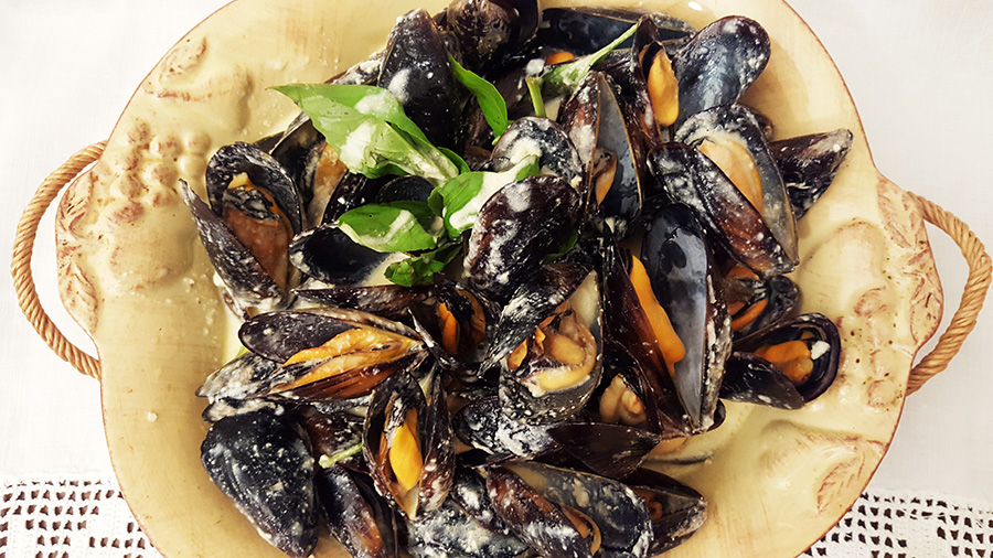 Gosto imenso de todos os marisco, sendo que talvez a sapateira seja o meu preferido. Também adoro os bivalves, todos sem exceção. Os mexilhões são um dos mariscos mais económicos, principalmente se forem comprados frescos, que também é como são mais saborosos e a saber a mar. O único trabalho que temos que ter é arranjá-los, retirando as barbas, mas são cinco ou dez minutos que são depois recompensados pelo fresco e delicioso que estes mexilhões nos oferecem.