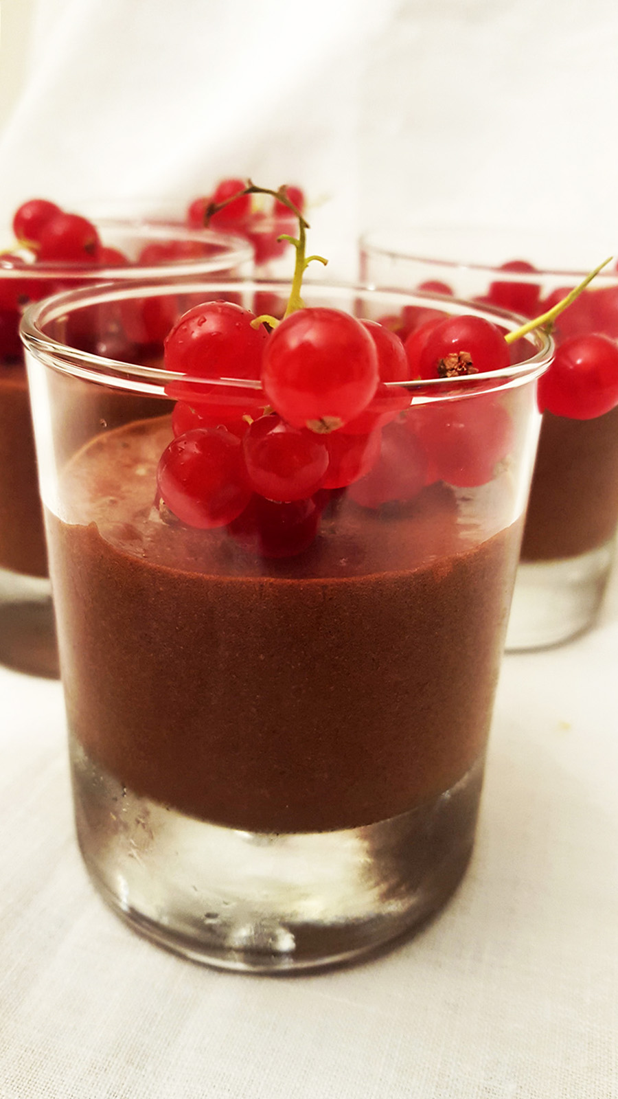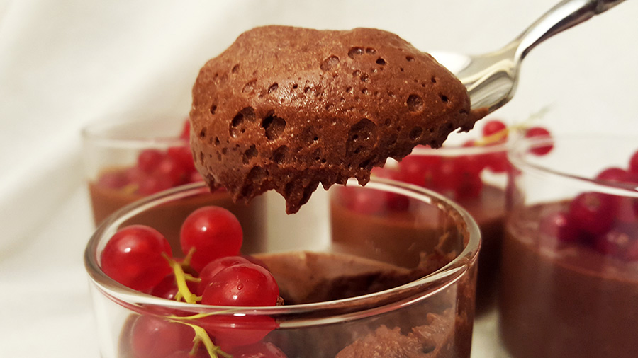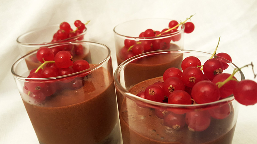 Esta é uma mousse muito rica porque leva muita manteiga e mais gemas do que claras. É calórica, portanto 😉 mas é tãoooo boa!! Impossível resistir! Para compensar a doçura e a riqueza da textura da mousse, adicionei-lhe alguma frescura: groselhas! Vermelhas, ácidas, magníficas!