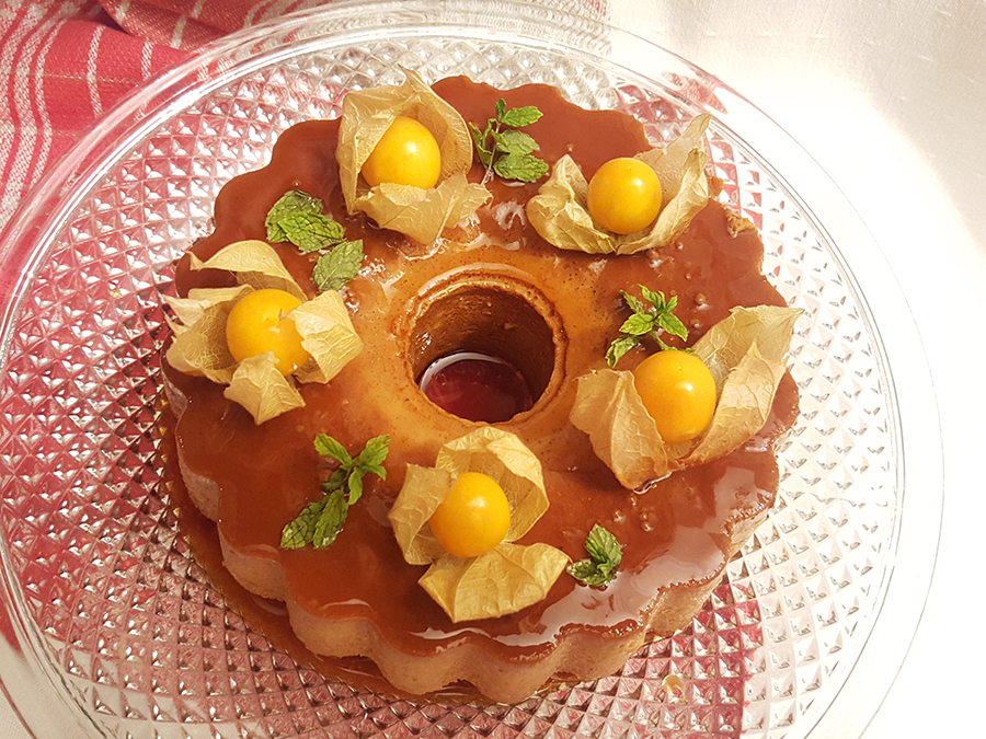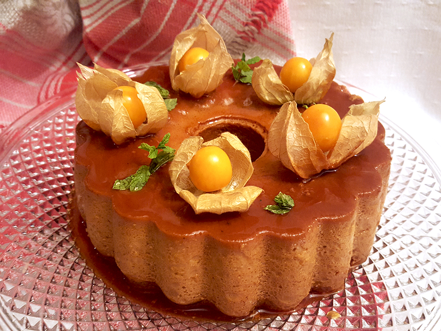 Arrefeça, leve ao frio e desenforme. No momento de servir, guarneça com fruta fresca com alguma acidez (usei fisális) e folhas de hortelã.