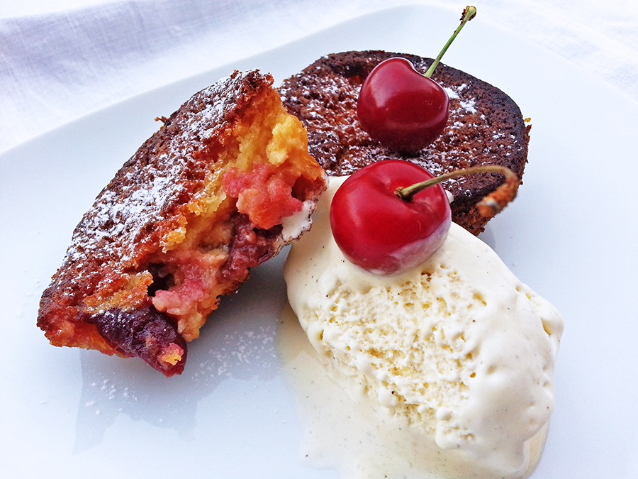 Servir com uma bola de gelado de baunilha ou simplesmente com mais cerejas frescas.