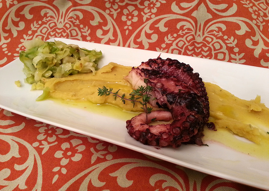 POLVO ASSADO COM PURÉ DE BATATA DOCE E TOMILHO:
